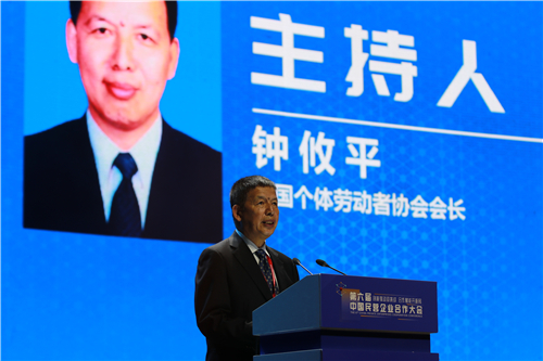 (中國(guo)箇體勞動(dong)者協會會(hui)長鐘攸平主持大會)