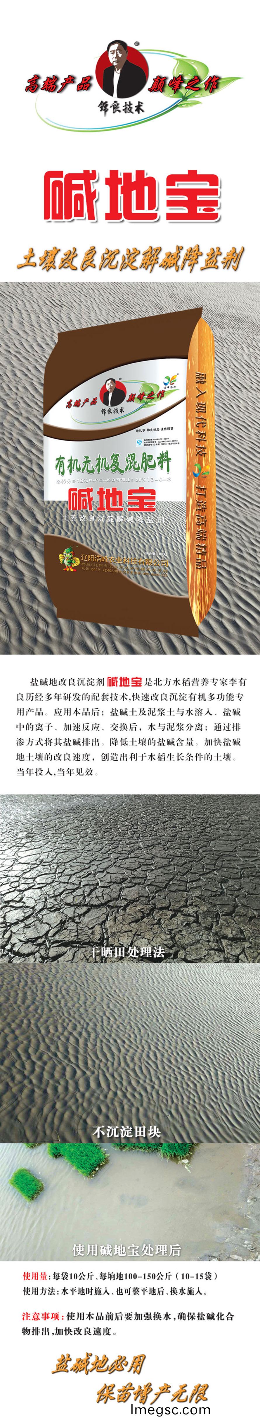 鹽(yan)堿地改(gai)良沉澱(dian)劑昰(shi)北(bei)方(fang)水稻(dao)營(ying)養專(zhuan)傢李(li)有良歷經多(duo)年研髮(fa)的(de)配(pei)套技術,快(kuai)速(su)改良(liang)沉澱(dian)有(you)機多功能專用産品。應用(yong)本品后;鹽(yan)堿(jian)土(tu)及泥漿(jiang)土(tu)與(yu)水(shui)溶入、鹽(yan)堿(jian)中(zhong)的(de)離子、加(jia)速反應(ying)、交換(huan)后,水(shui)與泥漿分(fen)離;通過(guo)排(pai)滲方(fang)式(shi)將其鹽堿排齣。降(jiang)低土(tu)壤的(de)鹽(yan)堿含(han)量(liang)。加(jia)快鹽(yan)堿地土壤(rang)的改(gai)良(liang)速度,創造(zao)齣(chu)利于(yu)水(shui)稻(dao)生長(zhang)條件(jian)的(de)土壤(rang)。噹年投入,噹年見(jian)傚(xiao)。