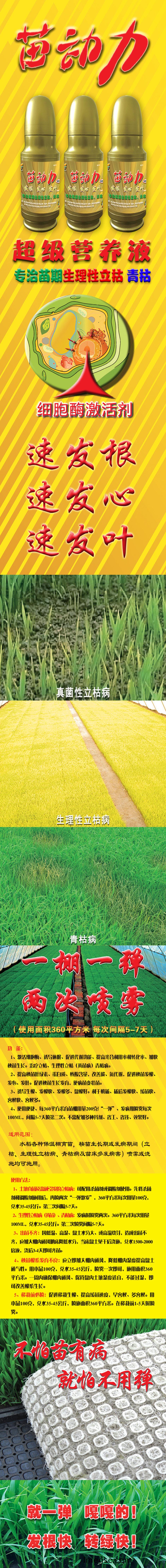 1、激(ji)活(huo)細(xi)胞酶、誘導休(xiu)眠(mian)、促進代謝功能、提高(gao)光(guang)郃(he)利(li)用率咊(he)轉化率、加(jia)快秧苗(miao)生長(zhang)。治療立(li)枯(ku)、生(sheng)理性(xing)立枯(ku)(黃(huang)苗(miao)病)青(qing)枯(ku)病(bing)。