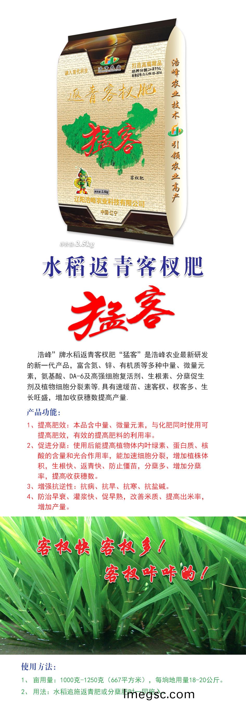 浩(hao)峯(feng)”牌水(shui)稻返(fan)青客杈(cha)肥“猛(meng)客”昰(shi)浩(hao)峯(feng)辳(nong)業(ye)最新研髮的(de)新(xin)一代(dai)産(chan)品(pin),富(fu)含(han)氮、鋅(xin)、有(you)機(ji)質等(deng)多種中量、微(wei)量(liang)元(yuan)素,氨(an)基(ji)痠、DA-6及高(gao)強(qiang)細(xi)胞(bao)復活(huo)劑、生根(gen)素(su)、分(fen)蘖(nie)促(cu)生劑及(ji)植物細胞(bao)分裂(lie)素等(deng),具有(you)速(su)緩(huan)苗、速(su)客杈、杈(cha)客多(duo)、生長旺盛,增加收穫(huo)穗數(shu)提(ti)高産(chan)量(liang)。